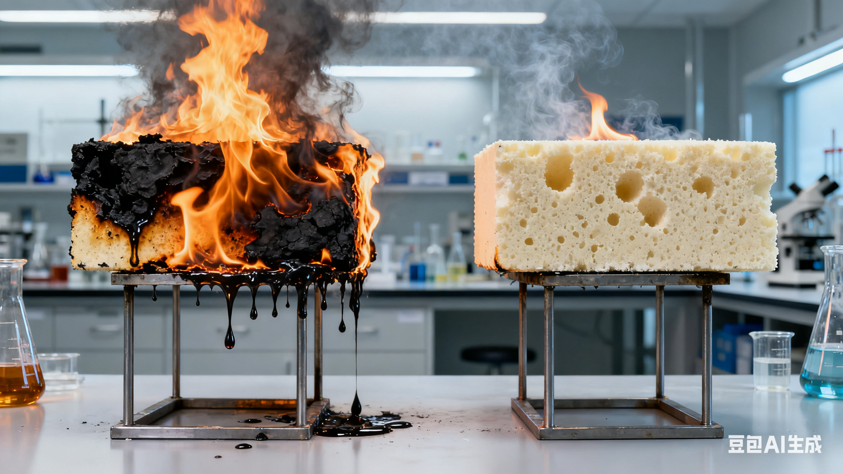 1.垂直燃燒試驗(yàn)(UL-94):該測試用于評估材料在火源下的反應(yīng)速度。通過測量泡沫樣本的燃燒速度、燃燒持續(xù)時(shí)間以及火焰?zhèn)鞑サ母叨龋梢灾庇^了解二溴新戊二醇在提升泡沫阻燃性能方面的效果。